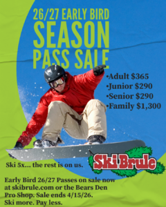 Ski Brule is OPEN Saturday & Sunday in April, 9:00-4pm. Early Bird Season Pass Sale is Active Now! Ends 4/15/26.