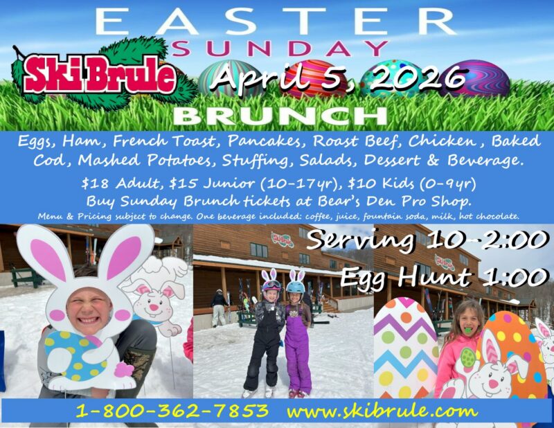 Ski Brule 397 Brule Mtn Rd, Iron River, United States25.26 Easter Brunch Easter Brunch At Ski BruleApril 5, 2026Serving 10-2:00PMEgg Hunt Begins 1:00PM Eggs, Ham, French Toast, Pancakes, Roast Beef, Chicken, Baked Cod, Mashed Potatoes, Stuffing, Salads, Dessert & […]