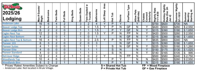 - Ski Brule Lodging Nightly Minimums: